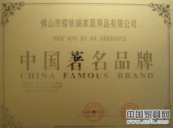 蝶依斕家居布藝榮獲2011中國(guó)著名品牌