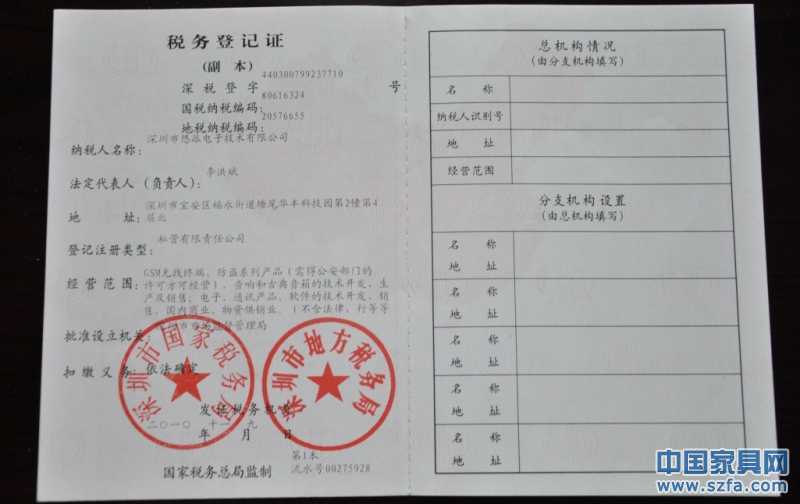| 發證機構: | 深圳市國家稅務局 | 發證時間 : | 2010-11-09 |