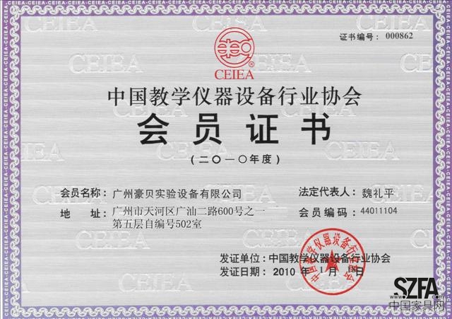 中國教學儀器設備行業協會會員證書