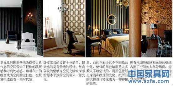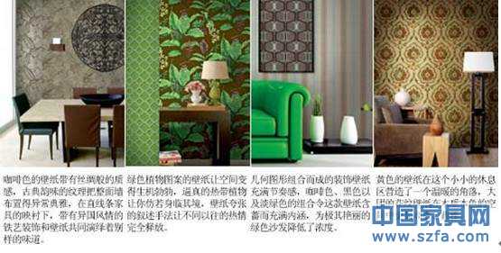五、用異域增添韻味 性價比指數: ★★★☆☆ 玩 “ 墻 ” 指數: ★★★★☆ 視覺沖擊指數: ★★★★★ 異域的元素在規則的生活中不斷展現它的優勢,一種別有韻味的風情令空間更加靈動,在傳統的家居中增添一點異域的符號自然會為居室帶來不一樣的靈感, 1 更完美地組合出別致的格調。 打造要點:深色打底 + 異域元素 整體效果:異域元素的壁紙在色彩上十分低調,通常最突出的表現是壁紙上帶有異國特色的紋理裝飾,不同的花紋能帶來不同國度的韻味,不同的植物更有不同地方區域的特點, 1 用深色或者單一色彩打底才能凸現這些花紋帶來的異域風情,異域元素的出現可以恰到好處地安撫普通空間的過于平淡,也可以彰顯個性空間的獨特審美,為空間蓋上時尚的印章。與異域元素搭配的家具大多線條簡潔,在質感和細節的設計上卻有過人之處,精致和細膩的家具是異域風情最好的詮釋。 |