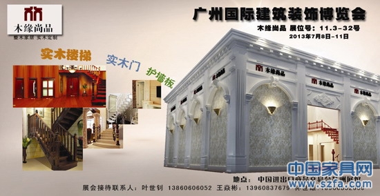 聚勢大建裝,演繹新格局下的“專而全”,一場精彩薈萃的品牌盛宴將于2013年7月8日—11日舉辦,這就是第十五屆中國(廣州)國際建筑裝飾博覽會。作為國內涵蓋各類產品最全的專業性展會,屆時木緣尚品將第四次盛裝亮相。今日的木緣尚品以新傳統木文化為理念,主打原創設計,讓空間更有價值,充分體現“價值至上”的原則,為消費者量身打造,從實木樓梯、木門、衣柜、酒柜、吊頂、木墻板,直至實木家具、沙發、床等實木家居等高端產品進行個性化的詮解釋和演繹,高端奢華的藝術創造為消費提供極致尊榮的美居享受,將優雅的藝術定格在生活中。