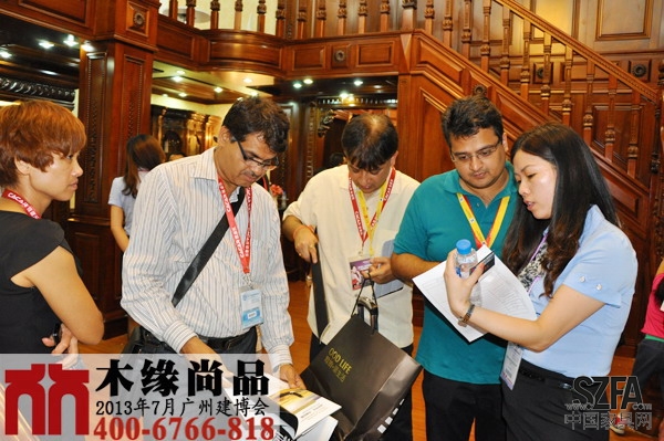 木緣尚品典雅奢華的整木家居吸引了眾多商家的關注,在短短幾天的展會中,就有來自全國各地150多家客商來詳細了解木緣尚品的品牌資訊,表達了希望獲得區域代理的愿望和要求。加盟部經理葉世釗和林世雄、王焱彬、洪海、何玉榮、黃彩華等不斷地接待客戶,每天每人要與十幾位客商交談,填資料,了解對方,介紹自己,他們重復同樣的話,表達同樣的熱情,盡管一天下來個個口干舌燥,但依然樂此不彼。他們深知,這是展示木緣尚品最好的時機,最好的環境,最好的氛圍。
