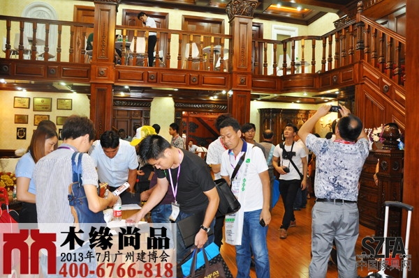 木緣尚品的展位在偌大的廣州建博會成為人們關注的焦點。許多參觀者一走進木緣尚品的展室,立刻眼前一亮,他們被周圍的場景所震撼,紛紛打電話邀約伙伴:“趕快到11—3來,看木緣尚品!”每天一開館,木緣尚品展位就人頭攢動,人流如織,參觀者在展室內流連忘返,細細品賞。還有的人逛了一圈展區,忍不住又回來欣賞木緣尚品的精美的家裝藝術。