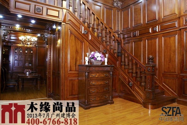 一批批的觀賞者徜徉在如此美輪美奐、奢華精妙場景,人們的想象被無窮地張揚。在這百米空間里,人們輕輕地撫摩著每處家裝的邊沿、棱角、彎口、柱頭,品味著木緣尚品家居賦予木文化深邃的理念。“愛木,愛生活,”居然來得這么閑情愜意。