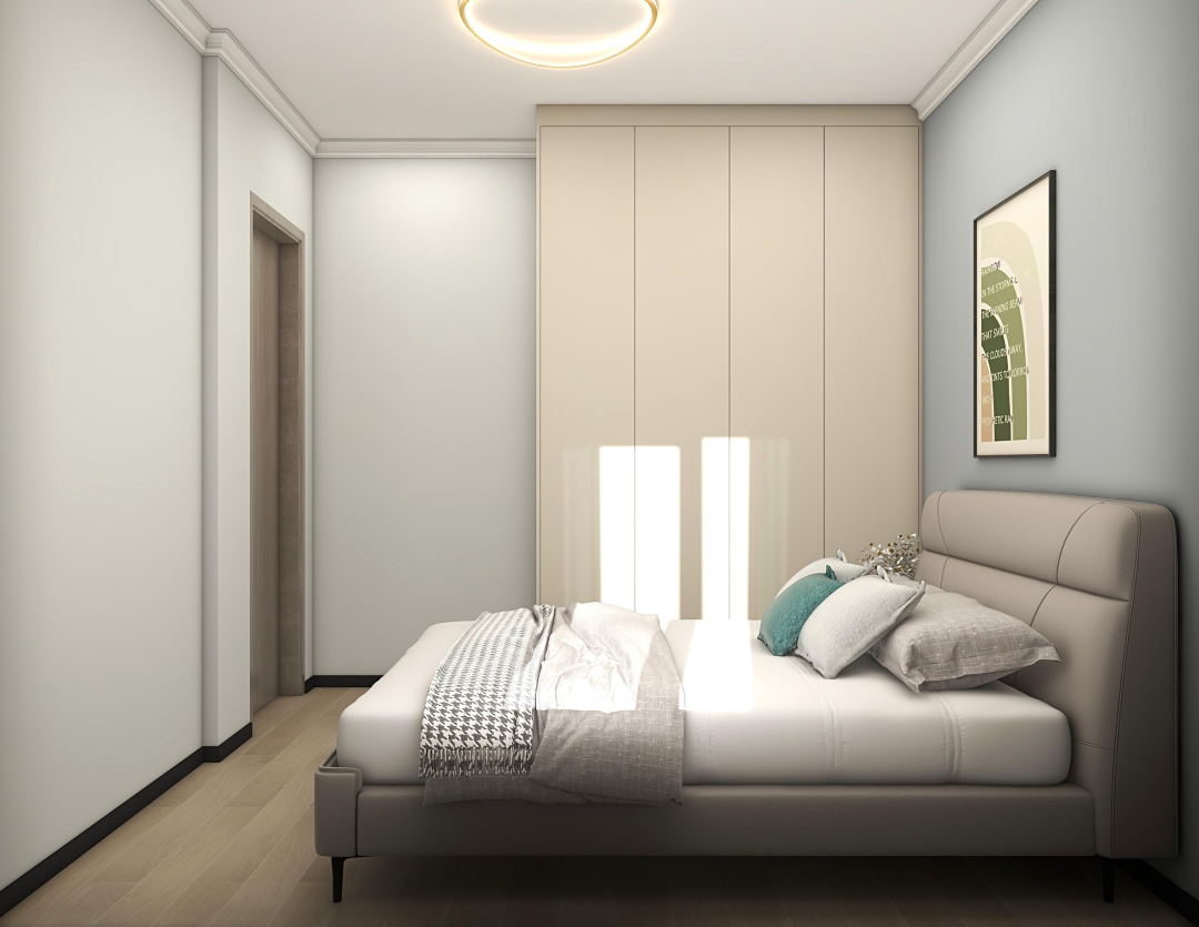 注重以色彩豐盈空間,主臥的深灰藍背景墻,流露出隨性悠然的生活格調(diào),抽象的掛畫裝飾創(chuàng)意十足。CBD家居佳夢軟床,廓形設(shè)計時尚大氣,淺灰色調(diào)素雅溫和,鋪墊出舒緩的睡眠氛圍,放松緊繃的心靈。