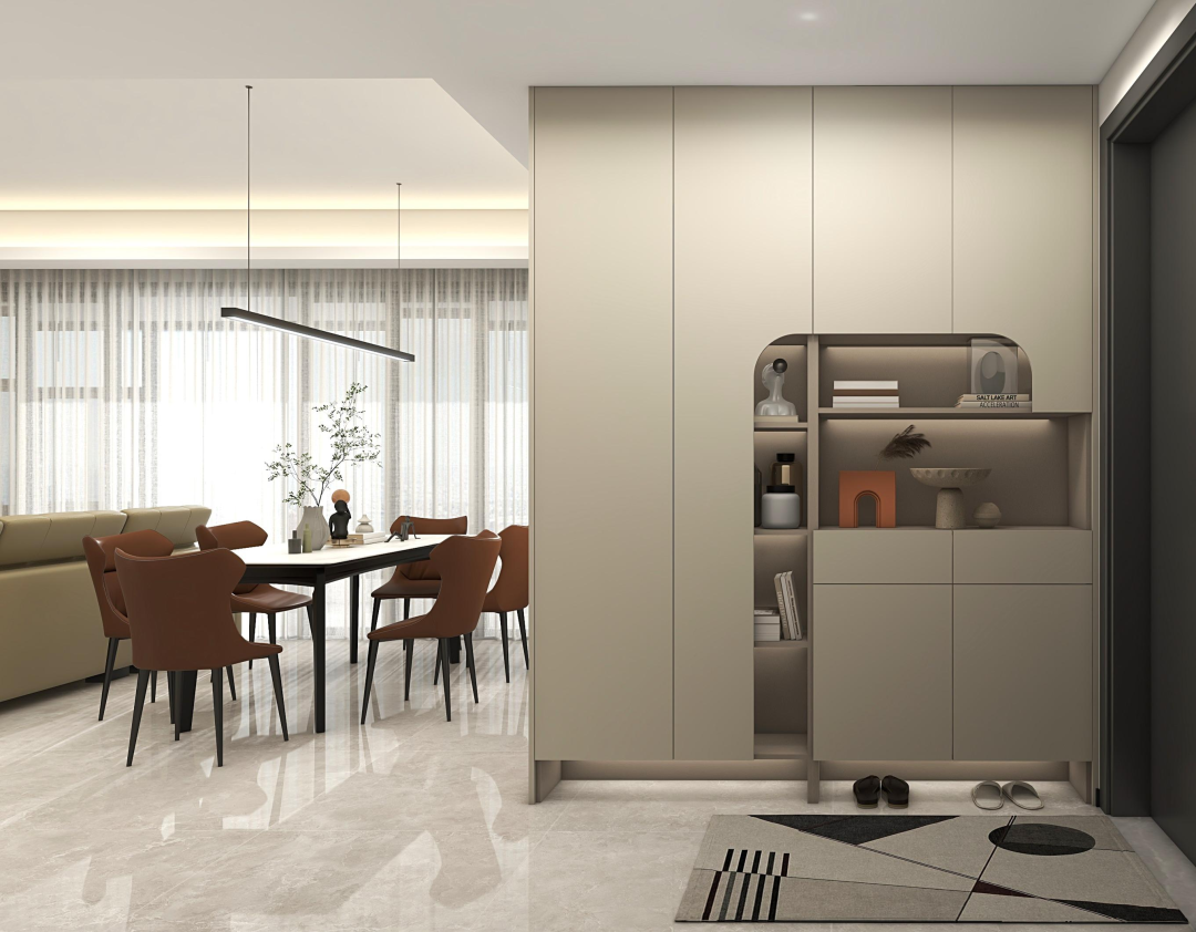淺咖色墻柜觀感輕盈自然,合理規(guī)劃收納空間,藏露有度,呈現(xiàn)出從容的空間秩序。