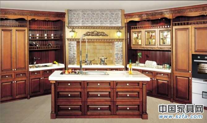 也有人說實木門板造型這么復雜,是不是會有一些油垢清洗不出來呢?即便是現代的烤漆門板,如果不經常擦拭,門板表面也會存有油污,顏色就發暗了。實木櫥柜有一個偷懶的借口,它們很少有做成嶄新的,作舊工藝在古典款的實木櫥柜中是最流行的特征,就像一個農婦天天擦自己的櫥柜,擦到的地方很亮、很淺,擦不到的地方就變深。即使有的地方擦不干凈也像是故意做出來的歲月痕跡。