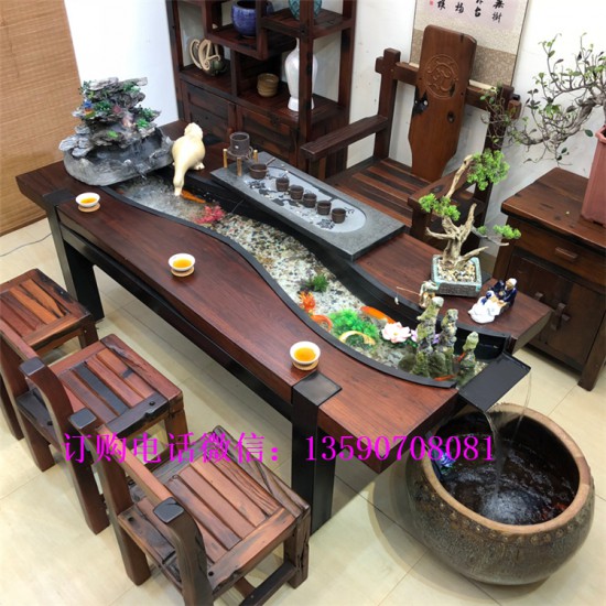 老船木茶臺茶桌茶幾客廳大龍骨茶臺沙發博古架