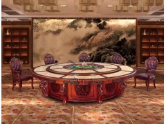 科奇電動(dòng)餐桌 豪華簡(jiǎn)潔 詳細(xì)信息 桌子由進(jìn)口橡木制作,傳統(tǒng)純手工雕刻、貼金箔;轉(zhuǎn)盤自動(dòng)轉(zhuǎn),帶聲控音樂噴泉,遙控控制;轉(zhuǎn)盤上帶2000W電磁爐;臺(tái)面上帶800W電磁爐,桌子內(nèi)部為鋼架結(jié)構(gòu),大寶面漆