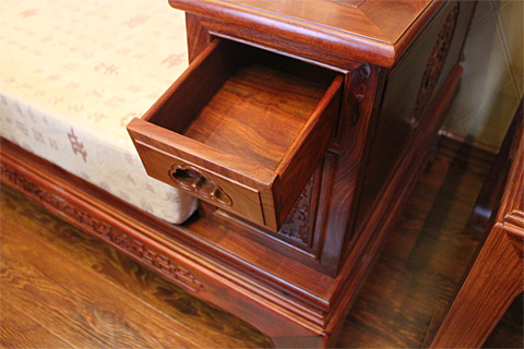 5、選用一級正宗紅木木材制作,一木拼接,色澤更均勻。