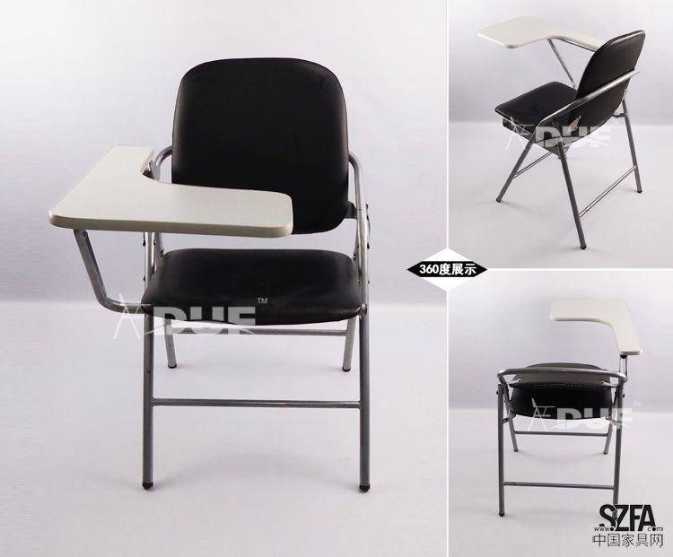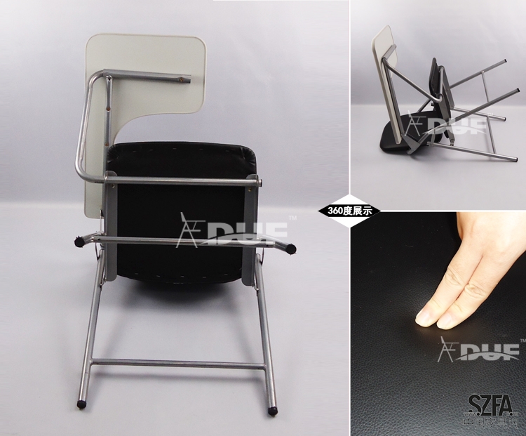 超加大寫字板折疊培訓椅PU皮寬大舒適耐用會議椅結實