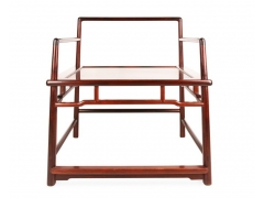 此款酸枝木禪椅,基本是玫瑰椅式,座面寬大,闊擴而深,成正方形,可供人盤足結跏跌坐。椅盤下安羅國榫加矮老,腿足間用步步高桿棖。唯獨靠背椅框內與扶手下的空間,均不安任何構件,令禪椅感覺空靈,頗能輔助坐者結跏跌坐禪椅沉思入定。