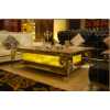 實木框架 ,內置高密度中纖板框架。外包實厚0.8mm玫瑰金不銹鋼,15MM鋼化仿天然云石玻璃 內置led燈