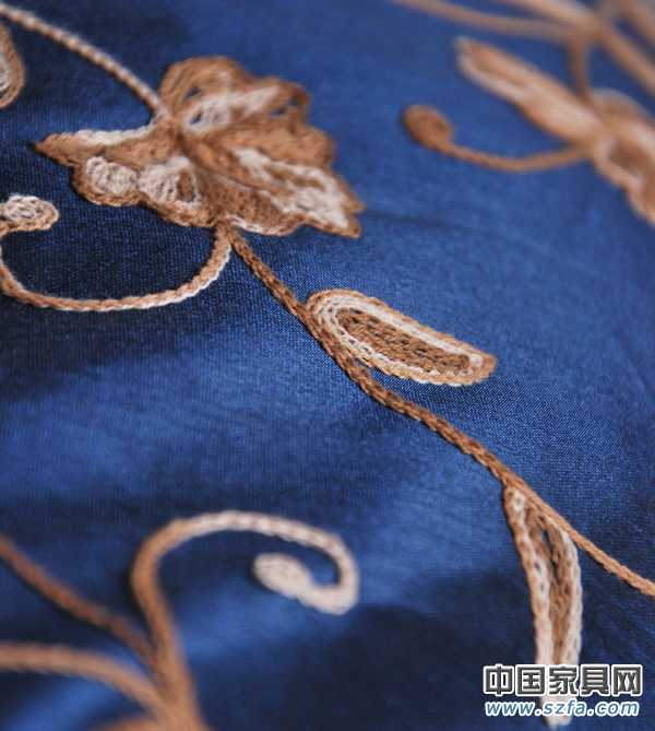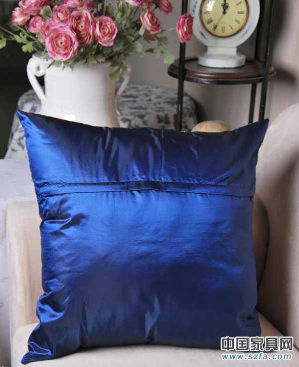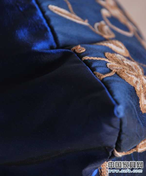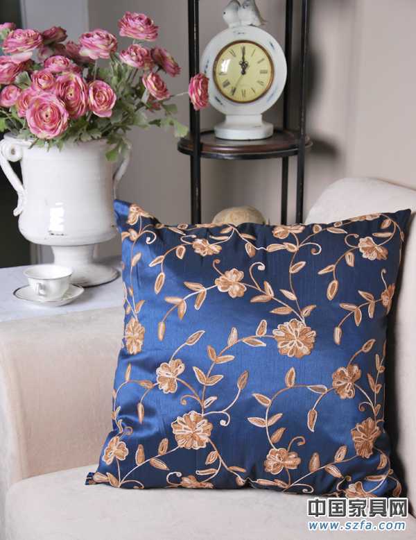 抱枕批發供應商提供抱枕批發幽雅花香.竹節色丁繡花藍色靠包套
