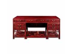 8抽辦公臺,非洲花梨材質(zhì)。本身已具有條紋和交錯紋理共同構(gòu)成特殊的美麗花紋,再加上工匠的精心打造,更是美輪美奐,整體造型典雅而莊重。