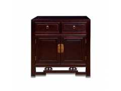 床頭柜,材質為非洲酸枝。簡約的設計、微暗的色調都與臥室的氣氛很協調,給人一種踏實穩健的安全感。