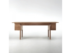 你可以用手撫觸到桌面下方類似雙手打開托舉的弧度。對于擁有它的主人而言,無論是桌面的細節處理,抽屜的收納功能,乃至金屬元素的搭配,詮釋一種人文的承載關系。