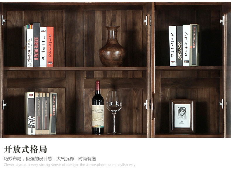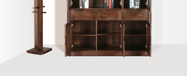 佐必林北美進口黑胡桃書柜三門柜實木書櫥可定制組合書柜書架