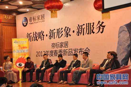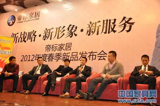 2012年02月10日,帝標家居2012年春季新品發(fā)布會在成都金牛山莊舉行。同時,帝標家居還特別邀請了成都市商務(wù)副局長川曾洪揚、成都市貿(mào)易促進委員會方雷、家具出口商會秘書長榮煜偉 、香江全球家居CBD總經(jīng)理莫志貴、成都好百年管理有限公司副總經(jīng)理陳偉新、搜狐電商總監(jiān)丁永興等參加經(jīng)銷商終端突圍論壇。