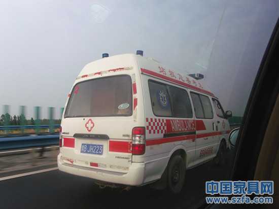 6月23日下午5點許,記者途經連霍高速河南蘭考段時,看到一輛噴有“蘭考縣急救站”字樣的醫務急救車疾馳而過,但讓記者詫異的是這輛急救車內并未載有病人或醫護人員,而是滿車箱柜模樣的家具及雜物。記者跟隨這輛醫務急救車,看到該車一直行駛至蘭考縣中心醫院附近。