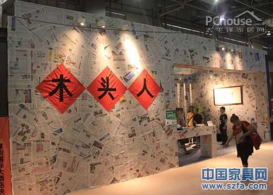 木頭人紙展廳:這是筆者見過的有史以來最省錢的展位設計:用報紙搭建展廳。恐怕很多人對此聞所未聞,但是在本屆東莞名家具展現場,卻見到了這樣的“紙廳”。