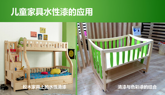 涂裝與被涂飾基材的肌理是緊密聯系的,市場上常用的木材有新西蘭松木、俄羅斯樟子松、芬蘭松、巴西松、落葉松,在涂裝效果上有本色涂裝、純白涂裝、水洗白米白涂裝、實色、透明色、半透明色涂裝等,涂飾時要根據基材的肌理和具體產品風格來對涂裝進行選擇。以下是市場上常見的兒童家具涂裝。