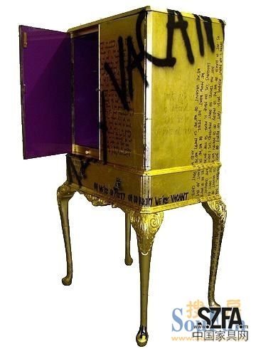 2.金色的外表、紫色的內(nèi)壁、黑色的噴漆,成就了柜子黃、紫、黑的經(jīng)典對比,高貴之余多了幽默和調(diào)侃。