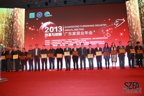 在第十屆中國(guó)家具行業(yè)發(fā)展高峰論壇后,活動(dòng)現(xiàn)場(chǎng)接著隆重舉行了2013廣東家居業(yè)年會(huì),會(huì)上為2013年度廣東優(yōu)秀家具企業(yè)進(jìn)行了頒獎(jiǎng)。