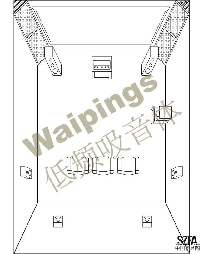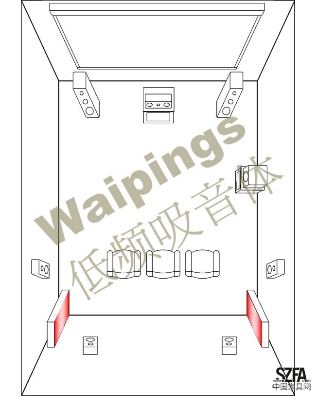 對(duì)于后墻或后墻沒(méi)有空間的環(huán)境,可以選擇在任一端放置低頻陷阱 直到天花。