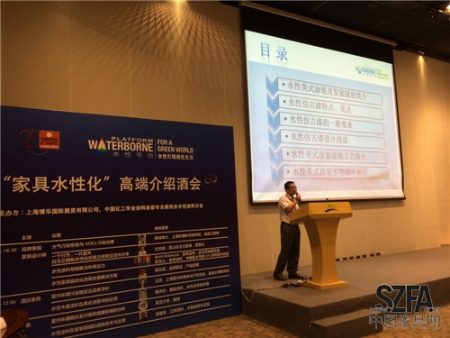 酒會會議上,來自大學、研究院及行業協會的專家教授對介紹了相關VOCs減排政策、深度分析了家具VOCs減排任務以及PM2.5與健康的主題內容。面對嚴厲的環保政策,家具企業如何應對激烈的行業競爭和生存壓力?在嚴格VOCs限排的指標下,家具企業只有通過由“油”轉“水”,實現“家具水性化”環保涂裝轉型,才能經得住環保政策的考驗,從而在家具行業中脫穎而出。作為這次酒會的重點,特別邀請到了昆山白玉蘭家具沈總現身說法站在家具企業的角度分享環保涂裝轉型經驗,其中沈總特別有提到很多家具廠關心的“油轉水”的成本問題,沈總結合轉換過程的各種比較,經過3年來的磨合,現在水性漆的綜合成本要比原來使用PU要低2%,這無疑極大鼓舞了在場行業人士的信心。