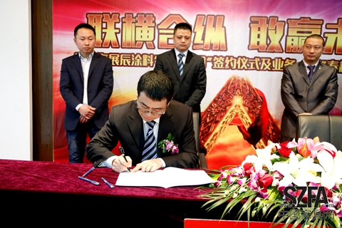 新年伊始、萬象更新。2015年2月2日下午,上海展辰涂料有限公司與三大合營公司正式舉行簽約儀式。董事長陳冰,輪值總裁劉順、輪值總裁孫金平等領導攜集團中心各部門負責人及上海展辰業務一部全體經銷商齊聚一堂,共襄盛舉。