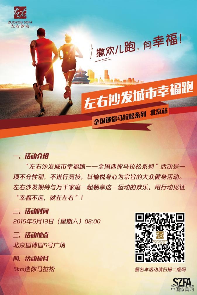 而在比賽現場,左右沙發也將成為最佳配角。不僅在“城市幸福跑”賽道邊設置沙發體驗區,而且獎品也是沙發以及與沙發有關的讓人心動的家居精品。