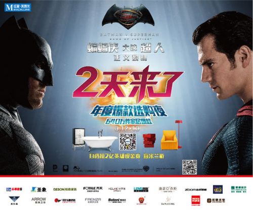 3月12日至3月13日,家居行業開年第一波最大規模促銷,紅星美凱龍“2天來了”即將在全國紅星美凱龍商場登陸。本次“2天來了”是紅星美凱龍攜手華納《蝙蝠俠大戰超人》打造的英雄級大促活動,640萬件家居爆款共同讓利,拉開2016年度促銷大戲。