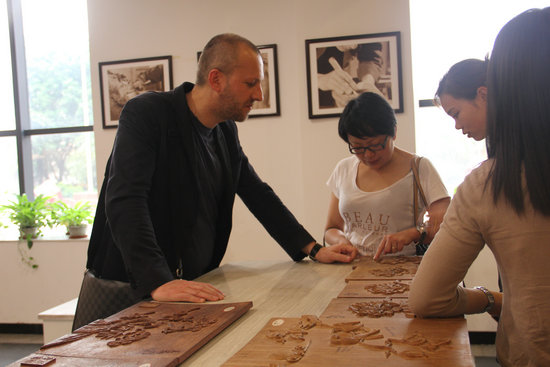 在深圳市家具行業協會的引導下,5月11日下午,意大利著名設計公司Gio Pagani的創始人GianLuca Montali一行參觀了深圳市紅木家具博物館,受到祥利工藝傢俬有限公司首席設計師曾翔鷹等的熱烈歡迎。