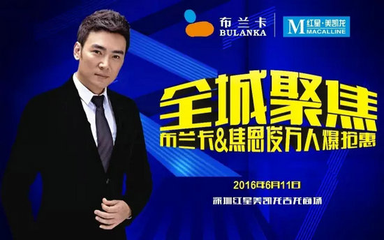 除了各大衛視及電視劇的“意外”植入,布蘭卡家居一系列的明星活動也贏得了不少關注度,繼15年初牽手“師奶殺手”吳啟華、“玫瑰王子”邰正宵兩場明星促銷及協辦“秀色樂客”時尚盛典演唱會,何晟銘、潘瑋柏、齊豫、伍思凱、潘美辰、黃文章等明星悉數到場,賺足了觀眾眼球后,6月11日布蘭卡家居牽手“小李飛刀”焦恩俊大型明星促銷即將在深圳拉開帷幕。