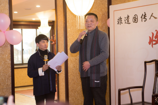 與會嘉賓上海視覺學院手作教授陳彤、兩岸著名室內設計師白慶聰、上海寶鋼宣傳部部長楊小川分別在現場致辭,表達對蘇作技藝的贊嘆和對許建平大師與羊文娟、羊洋結成師徒緣分的祝賀。