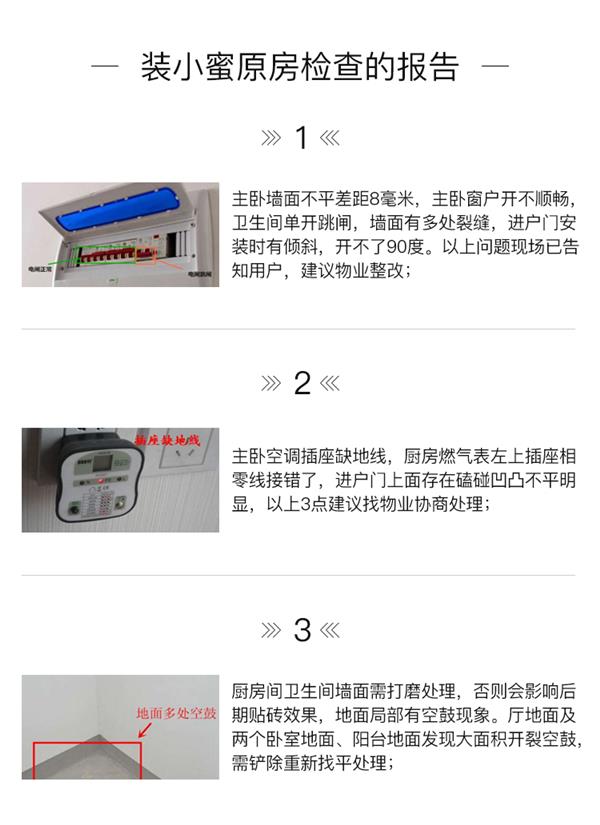 裝修前,監理是如何判別問題的責任方呢?下面為裝小蜜最近一位密友的體檢報告(裝小蜜原房檢查的報告)