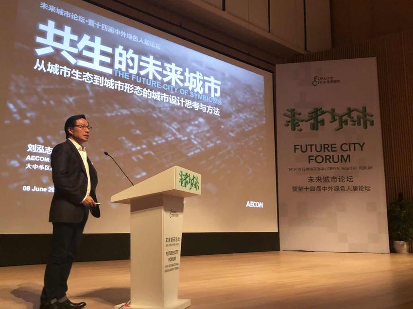 AECOM亞太區(qū)高級副總裁,大中華區(qū)城市戰(zhàn)略與發(fā)展負(fù)責(zé)人劉泓志發(fā)表了題為《共生的未來城市》的演講,他認(rèn)為城市的初衷是能夠有系統(tǒng)有組織的提供公共服務(wù),不管規(guī)模大或小,有這樣一個基礎(chǔ),才能夠稱之為城市。要從基礎(chǔ)設(shè)施的角度一并考慮來應(yīng)對城市的問題,這樣才能從更大范圍的角度理解城市生態(tài)。對于未來城市的構(gòu)想,他表示,未來的城市將是以人為核心,多樣生態(tài)復(fù)合共生的城市。追求理想的未來城市生活,我們必須探索物質(zhì)生態(tài),數(shù)字生態(tài),與社會生態(tài)相融合的城市智慧與能力。回歸人性價值,才是理想城市的未來。