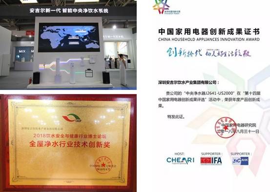 “安吉爾新一代智能中央凈飲水系統(tǒng)”可有效去除大腸桿菌,過濾精度提升50倍。它的上市備受矚目,獲得國家有關(guān)機構(gòu)政府、權(quán)威專業(yè)學(xué)者、消費者的眾多好評。在《第二屆中國凈水行業(yè)博士論壇》中,榮獲“全屋凈水行業(yè)技術(shù)創(chuàng)新獎”和“論文獎”兩項大獎。在德國柏林舉辦的第十四屆中國家用電器創(chuàng)新成果推介活動中,安吉爾中央凈水器J2641榮獲“產(chǎn)品創(chuàng)新成果”獎,眾多獎項讓世看到了“中國智造”,讓中國人看到了安吉爾在凈飲水行業(yè)的的匠人精神。