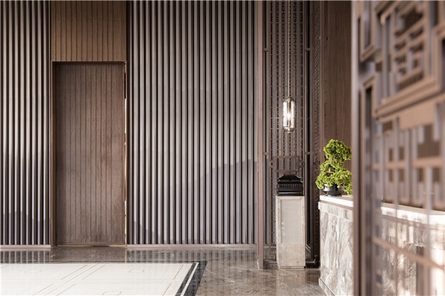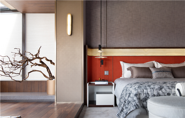 無需濃墨重彩的裝飾,輕描淡寫的山水畫足以表達出來訪者的心境。所有的裝飾點綴恰到好處,既不沉悶也不浮躁,隨著視覺的推進,材質(zhì)的層次與空間進行平衍共生。
