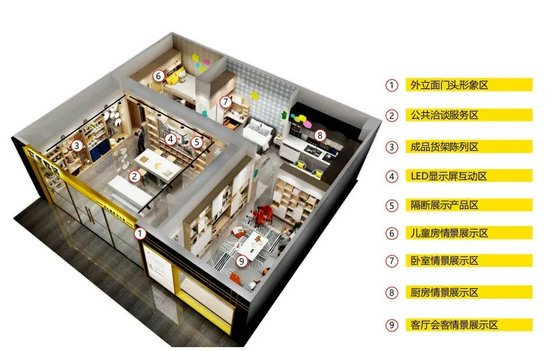 根據初裝、換裝、翻新和居家四大主流需求,以獨立店、店中店、獨立展區多種方式融入到家裝公司、家居大店、社區店、樓盤獨立店多種模式靈活適配。