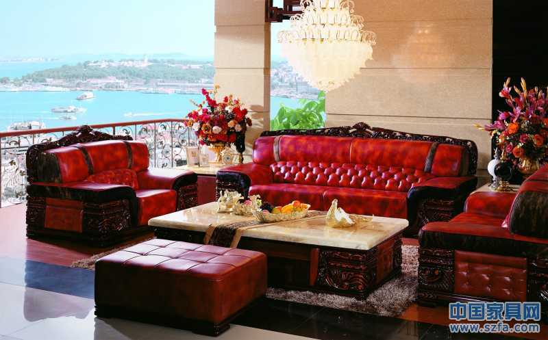 此沙發用純實木手工雕刻中國國花——牡丹花,寓意著雍容華貴、富麗端莊、富貴吉祥、繁榮興旺