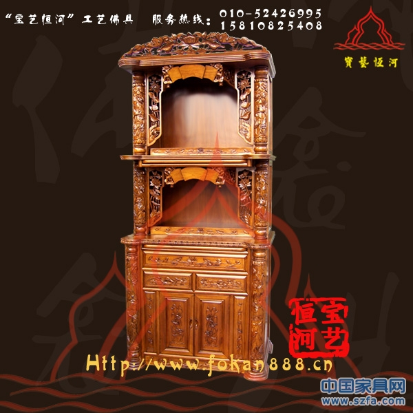 北京市寶藝恒河工藝佛具有限公司(原北京儀和工藝佛龕廠),成立于2002年,是一家以木雕工藝品起家,專業木雕高檔佛龕生產企業,也是北京最大的佛龕供應商,生產的佛龕品牌“寶藝恒河”,其香樟木佛龕專賣店已布遍北京城。定制佛龕找儀和,儀和佛龕中國佛龕定制專家;請佛龕請到寶藝恒河,寶藝恒河中國佛龕第一品牌。