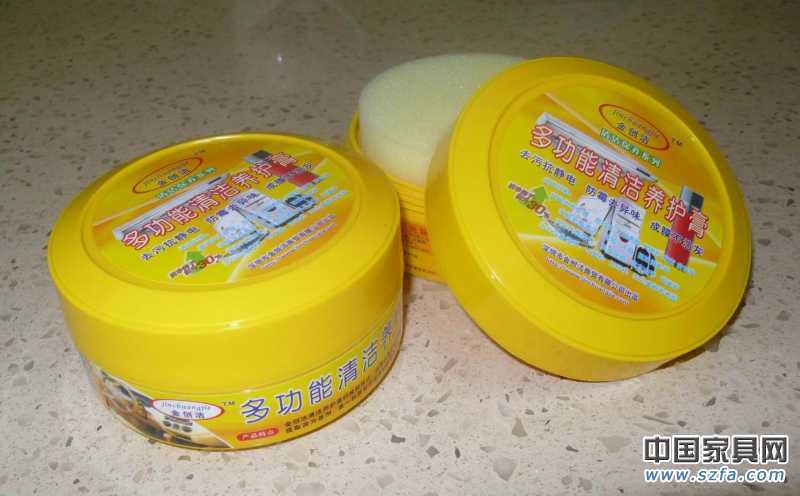 多功能清潔膏又名萬能清潔膏、去污膏、電腦清潔膏、一擦凈、干擦凈、無水清潔膏、清潔極品、上光精品。具有綠色環保、無毒、無腐蝕、無異味、去污力強、殺菌消毒、上光、節水節時的獨特優點。該產品是采用天然皂角、高級硅油和椰子油經過特殊工藝加工而成的新型固體清潔劑。純天然精華原料,領先世界的生物工程技術,使具有陽離子特性和超強吸附性的椰子油植物分子迅速吸附跟蹤溶解灰塵油煙污垢,達到一擦就干凈,立竿見影的效果!此產品的問世填補了“清潔行業無水清潔”的空白,受到了環保部門的高度重視和大力推廣。該產品配方有專業化學實驗室提供,是中國目前第一款按化妝品原料工藝生產(試驗直接涂在臉面和皮膚上,沒有發現任何副作用)的清潔產品,中性無磷,不含摩擦劑,不損傷物體表面。