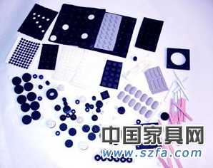 家具膠墊是以EVA泡棉為基材,單面或者雙面涂布高性能壓敏膠,復合單硅或雙硅離型材料模切沖壓而成。有各種厚度、密度和顏色選擇,可以成卷或沖型模切成各種形狀,膠墊具有優異的耐候性能,耐化學性,緩沖性、吸音性和優越的粘接性,應用極其廣泛.