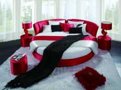 (6) 順德家私 軟包床頭 現代名床 紅色婚床|