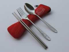(10) 便攜式旅行餐具三件套,廣告促銷禮品