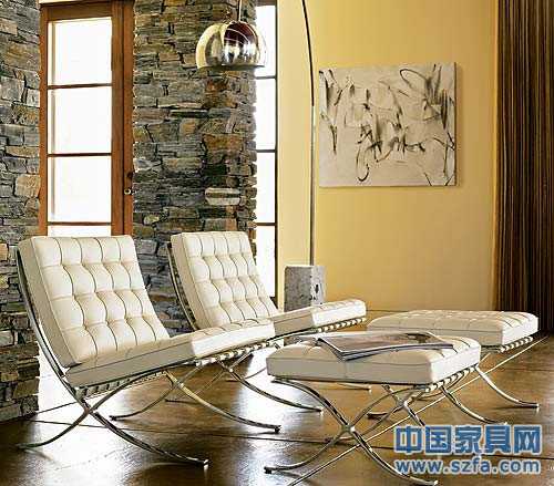 【現代時尚不銹鋼家具】巴塞羅那椅(Barcelona Chair)是由密斯.凡.德羅(Mies vander Rohe)在1929年為巴塞羅那世博會設計的偉大作品,開創了現代設計先河,并被德國作為禮物送給西班牙國王,這件作品被視為二十世紀最經典的椅子流行至今。眩亮的不銹鋼和柔軟的皮革完美結合在一起,讓空間充滿了時代感。