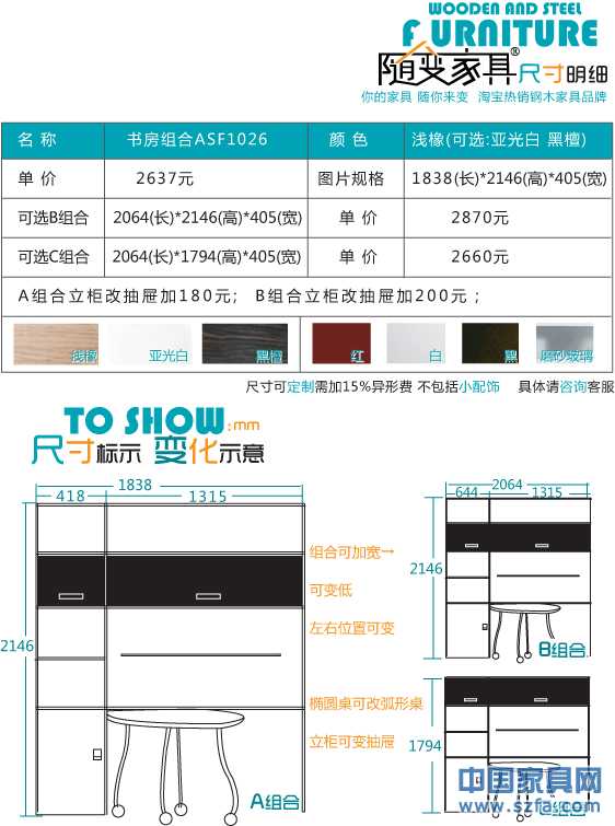 隨變書房隨心搭配鋼木家具連體書桌柜ASF1026