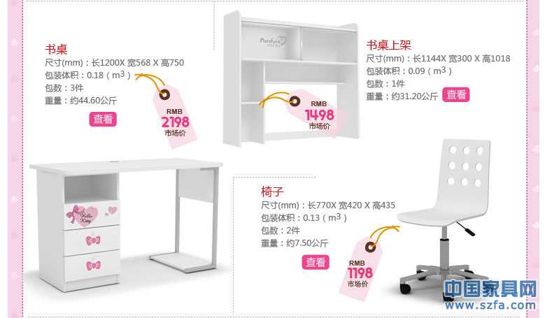 | 數套房可選單品 | 1.2米床/1.5米床+床頭柜+二門衣柜/三門衣柜+書桌+書桌上架+椅子 | 板材 | E0級環保板 | 板材厚度 | 16MM、25MM | |